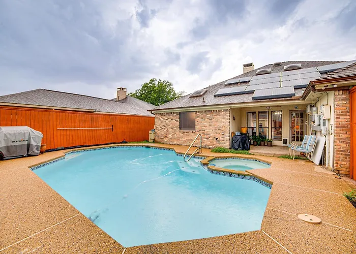 Welcome to the serene escape of the Pet-Friendly Home With Pool - 8 Mi To Central Plano!, A charming retreat perfectly situated just 13 kilometers from the vibrant heart of Downtown Plano. This delightful residence offers a unique blend of comfort and convenience, making it ideal for families, couples, and pet lovers alike. With a refreshing pool as its centerpiece, guests can unwind in a tranquil atmosphere where relaxation and recreation seamlessly intertwine.